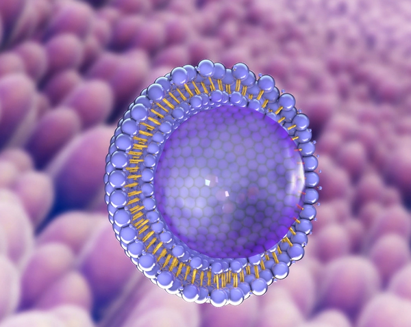 将脂质做成一种类似于细胞的微脂小球,将活性药物包裹于其中。脂质体的基本成分磷脂或相关合成材料具有良好的生物相容性,可有效地增加药物的溶解性,并靶向作用,能有效提高疗效,降低副作用。